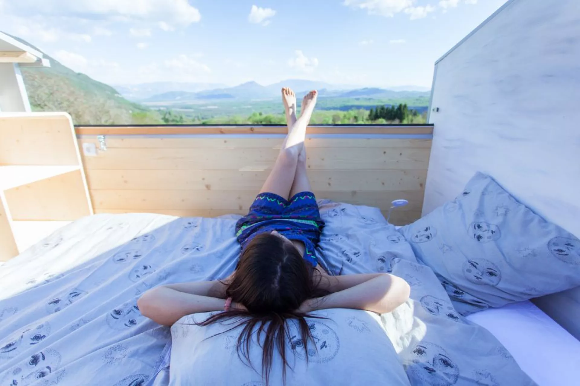 La Tête dans les étoiles’ interior is snug but makes space for a daybed and a work area
